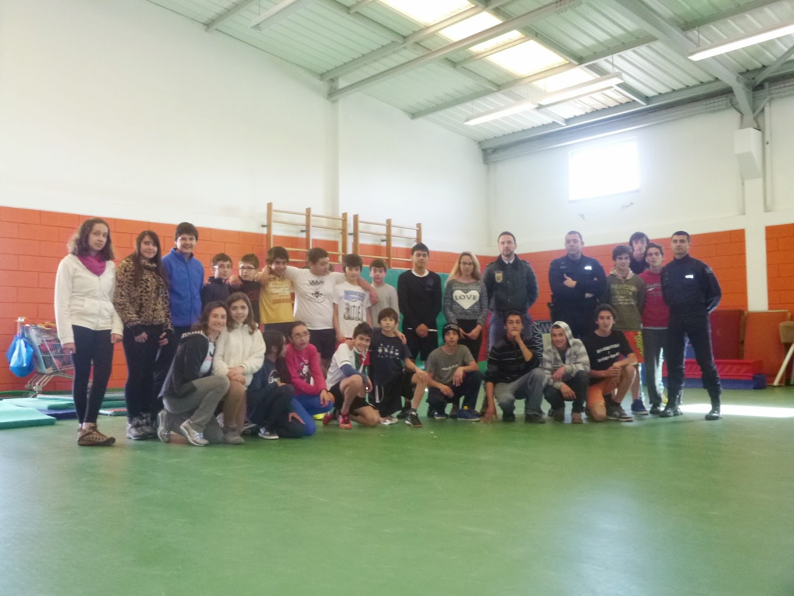 Depois, passámos à parte mais divertida da aula, a prática. Os Guardas ensinaram-nos umas técnicas de defesa física que nos permitem libertar e evitar entrar em confusões. Não dá para descrever tudo, mas consigo dizer que foi uma aula mesmo muito divertida, onde relembrámos que a violência não nos serve mesmo de nada e só causa problemas para todos.
